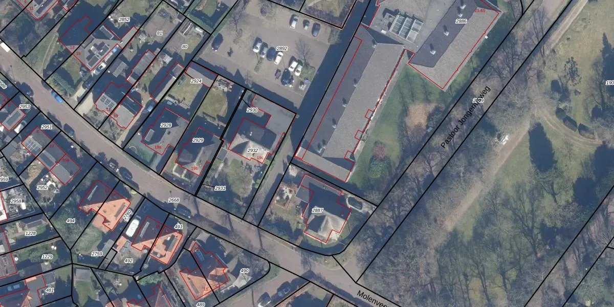 Het perceel waarop Molenveenweg 21 staat heeft een oppervlakte van 3237 m². Dit is een zeer groot perceel. De perceeloppervlakte wordt geregistreerd door het Kadaster. Gedetailleerde informatie over de maten van dit perceel kunt u vinden in het rapport Kadastrale kaart met maatvoering van Molenveenweg 21.