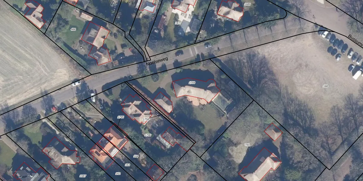 Noolseweg 1 is gelegen op kadastraal perceel BRC00D1759. Deze kadastrale aanduiding is uniek en wordt gebruikt door het Kadaster om eigendomsrechten en andere zakelijke rechten vast te leggen. Het perceel maakt onderdeel uit van de kadastrale gemeente Blaricum.