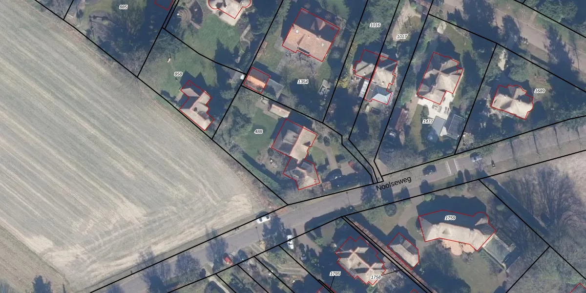 Het perceel waarop Noolseweg 2 staat heeft een oppervlakte van 1230 m². Dit is een zeer groot perceel. De perceeloppervlakte wordt geregistreerd door het Kadaster. Gedetailleerde informatie over de maten van dit perceel kunt u vinden in het rapport Kadastrale kaart met maatvoering van Noolseweg 2.