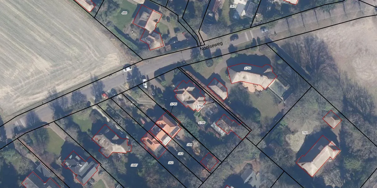 Het perceel waarop Noolseweg 3 staat heeft een oppervlakte van 1219 m². Dit is een zeer groot perceel. De perceeloppervlakte wordt geregistreerd door het Kadaster. Gedetailleerde informatie over de maten van dit perceel kunt u vinden in het rapport Kadastrale kaart met maatvoering van Noolseweg 3.