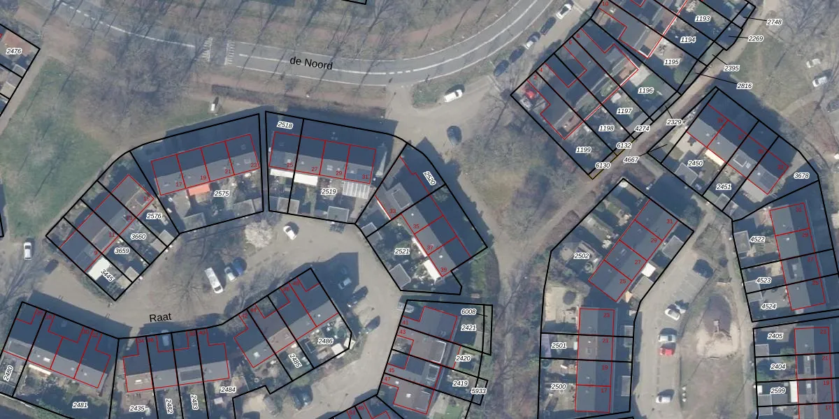 Het perceel waarop Raat 35 staat heeft een oppervlakte van 437 m². Dit is een groot perceel. De perceeloppervlakte wordt geregistreerd door het Kadaster. Gedetailleerde informatie over de maten van dit perceel kunt u vinden in het rapport Kadastrale kaart met maatvoering van Raat 35.