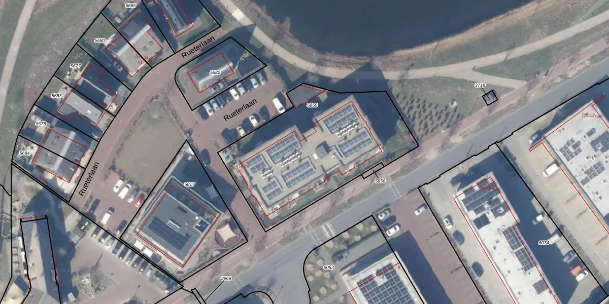 Het perceel waarop Rueterlaan 23 staat heeft een oppervlakte van 1720 m². Dit is een zeer groot perceel. De perceeloppervlakte wordt geregistreerd door het Kadaster. Gedetailleerde informatie over de maten van dit perceel kunt u vinden in het rapport Kadastrale kaart met maatvoering van Rueterlaan 23.