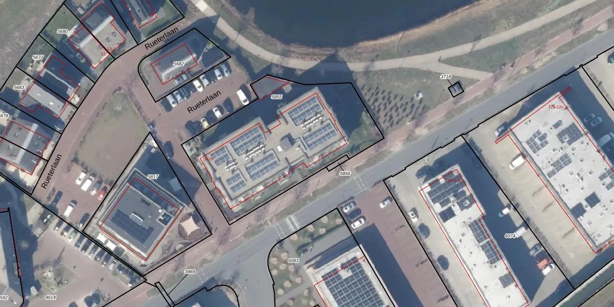 Rueterlaan 55 is gelegen op kadastraal perceel BRC00C5855. Deze kadastrale aanduiding is uniek en wordt gebruikt door het Kadaster om eigendomsrechten en andere zakelijke rechten vast te leggen. Het perceel maakt onderdeel uit van de kadastrale gemeente Blaricum.