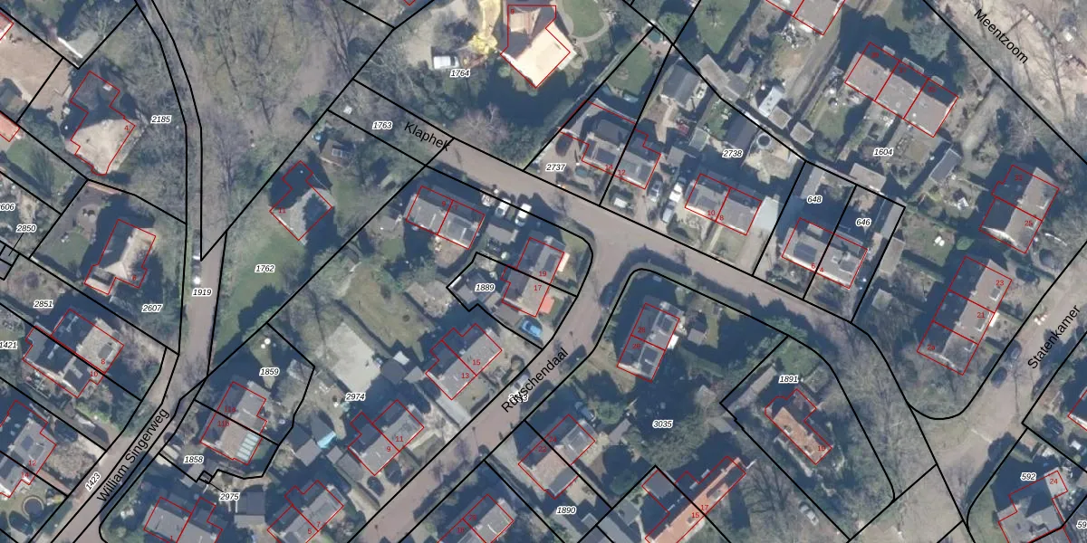 Het perceel waarop Ruyschendaal 19 staat heeft een oppervlakte van 2849 m². Dit is een zeer groot perceel. De perceeloppervlakte wordt geregistreerd door het Kadaster. Gedetailleerde informatie over de maten van dit perceel kunt u vinden in het rapport Kadastrale kaart met maatvoering van Ruyschendaal 19.