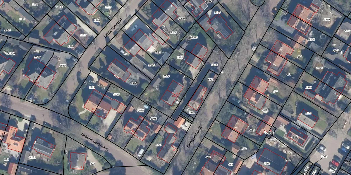 Het perceel waarop Schapendrift 14 staat heeft een oppervlakte van 510 m². Dit is een groot perceel. De perceeloppervlakte wordt geregistreerd door het Kadaster. Gedetailleerde informatie over de maten van dit perceel kunt u vinden in het rapport Kadastrale kaart met maatvoering van Schapendrift 14.