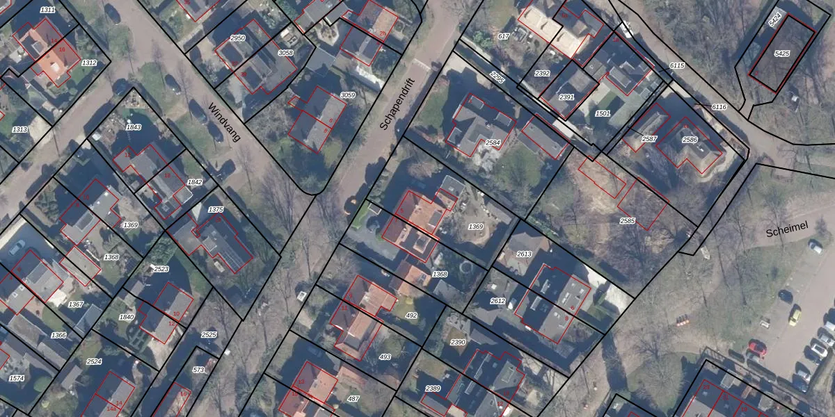 Gebruik de zoekbalk of klik op een perceel voor informatie over de adressen binnen dit perceel.
