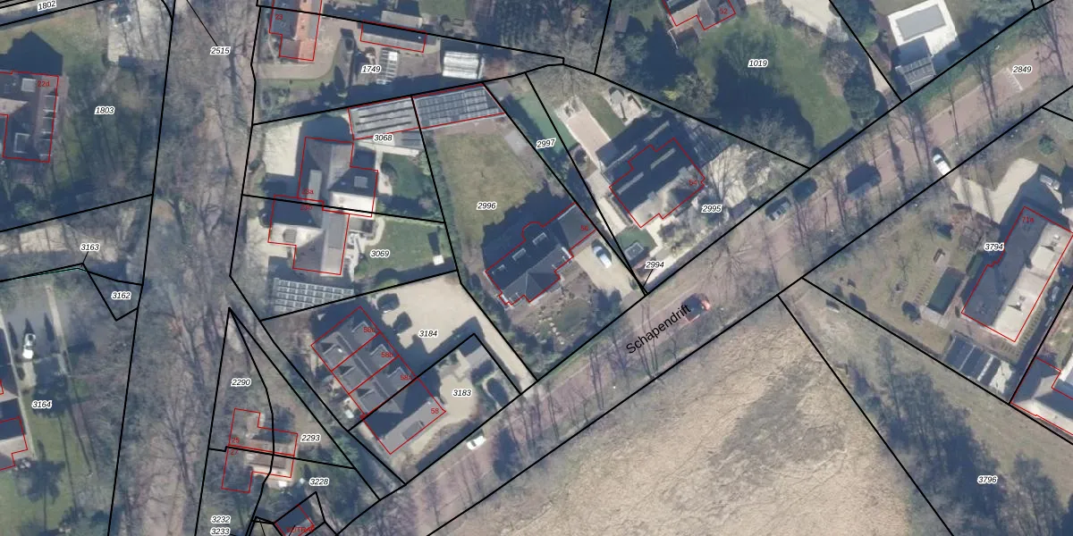 Het perceel waarop Schapendrift 56 staat heeft een oppervlakte van 1207 m². Dit is een zeer groot perceel. De perceeloppervlakte wordt geregistreerd door het Kadaster. Gedetailleerde informatie over de maten van dit perceel kunt u vinden in het rapport Kadastrale kaart met maatvoering van Schapendrift 56.