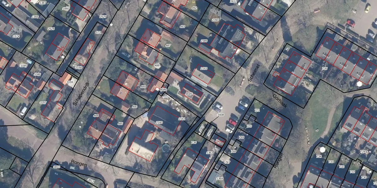 Het perceel waarop Scheimel 16 staat heeft een oppervlakte van 341 m². Dit is een groot perceel. De perceeloppervlakte wordt geregistreerd door het Kadaster. Gedetailleerde informatie over de maten van dit perceel kunt u vinden in het rapport Kadastrale kaart met maatvoering van Scheimel 16.