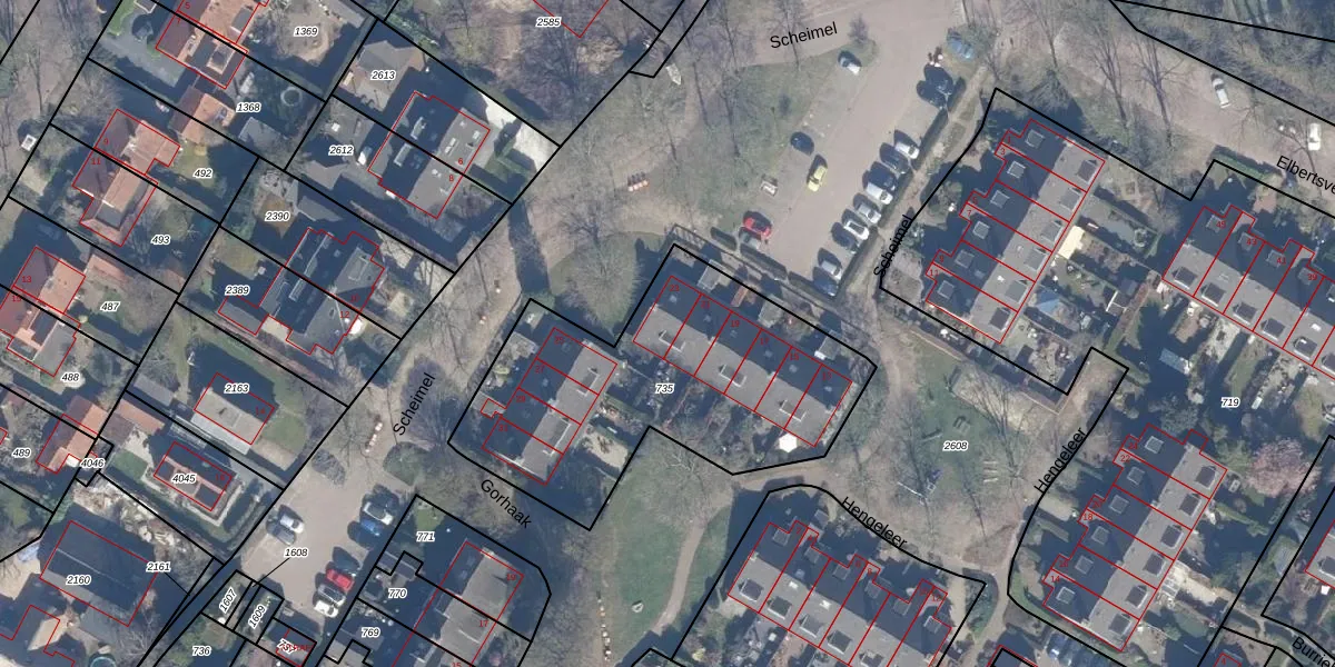 Het perceel waarop Scheimel 23 staat heeft een oppervlakte van 1410 m². Dit is een zeer groot perceel. De perceeloppervlakte wordt geregistreerd door het Kadaster. Gedetailleerde informatie over de maten van dit perceel kunt u vinden in het rapport Kadastrale kaart met maatvoering van Scheimel 23.
