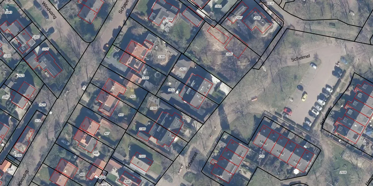 Het perceel waarop Scheimel 8 staat heeft een oppervlakte van 408 m². Dit is een groot perceel. De perceeloppervlakte wordt geregistreerd door het Kadaster. Gedetailleerde informatie over de maten van dit perceel kunt u vinden in het rapport Kadastrale kaart met maatvoering van Scheimel 8.