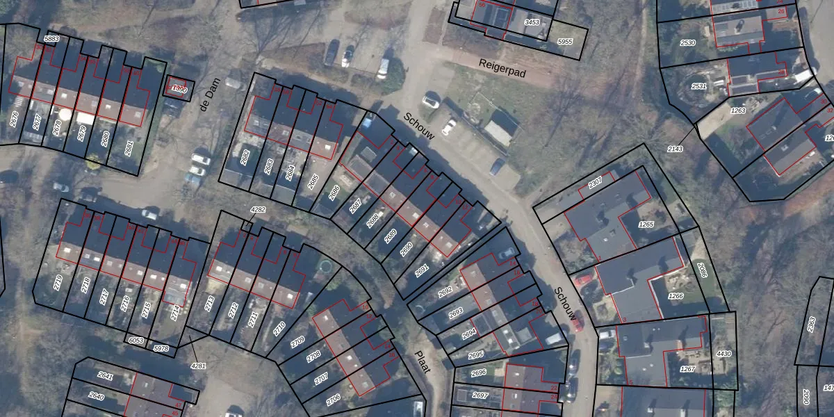 Gebruik de zoekbalk of klik op een perceel voor informatie over de adressen binnen dit perceel.