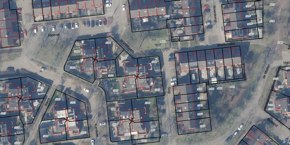 Gebruik de zoekbalk of klik op een perceel voor informatie over de adressen binnen dit perceel.