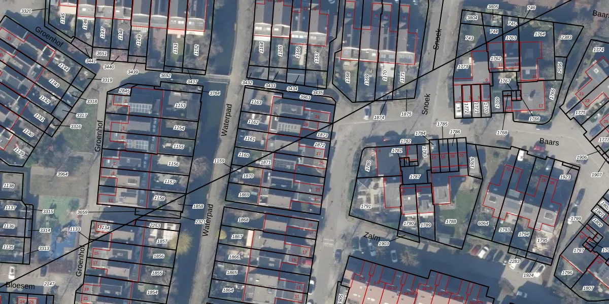 Het perceel waarop Snoek 27 staat heeft een oppervlakte van 78 m². Dit is een klein perceel. De perceeloppervlakte wordt geregistreerd door het Kadaster. Gedetailleerde informatie over de maten van dit perceel kunt u vinden in het rapport Kadastrale kaart met maatvoering van Snoek 27.