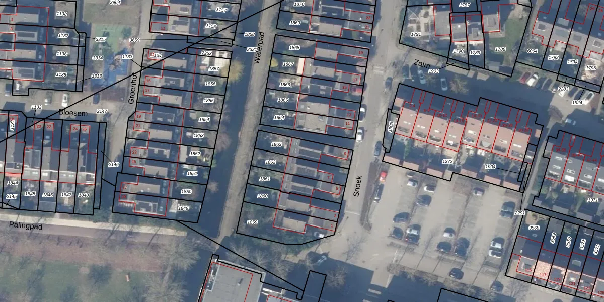 Gebruik de zoekbalk of klik op een perceel voor informatie over de adressen binnen dit perceel.