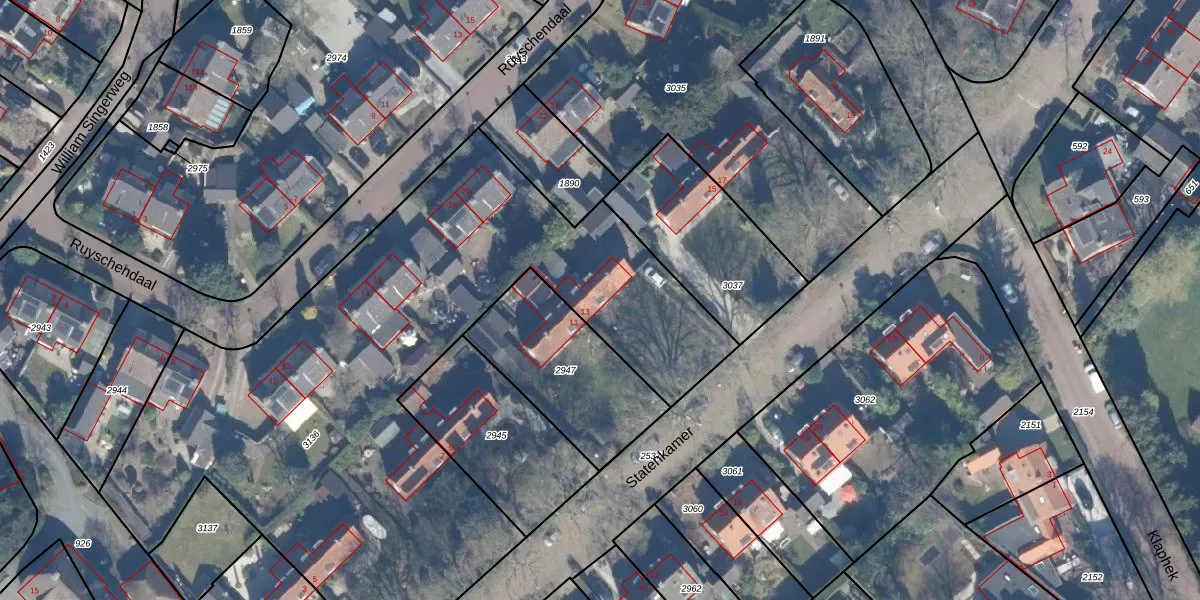 Het perceel waarop Statenkamer 13 staat heeft een oppervlakte van 3524 m². Dit is een zeer groot perceel. De perceeloppervlakte wordt geregistreerd door het Kadaster. Gedetailleerde informatie over de maten van dit perceel kunt u vinden in het rapport Kadastrale kaart met maatvoering van Statenkamer 13.
