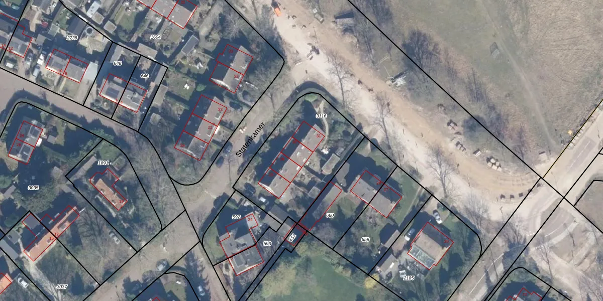 Het perceel waarop Statenkamer 30 staat heeft een oppervlakte van 1010 m². Dit is een zeer groot perceel. De perceeloppervlakte wordt geregistreerd door het Kadaster. Gedetailleerde informatie over de maten van dit perceel kunt u vinden in het rapport Kadastrale kaart met maatvoering van Statenkamer 30.
