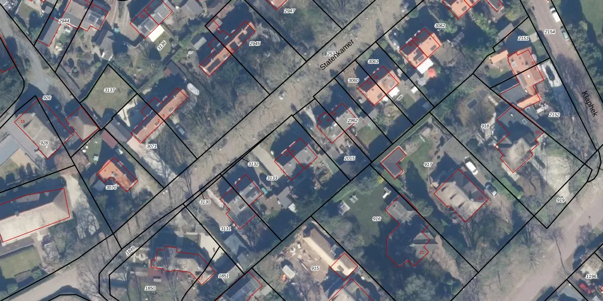 Het perceel waarop Statenkamer 8 staat heeft een oppervlakte van 899 m². Dit is een groot perceel. De perceeloppervlakte wordt geregistreerd door het Kadaster. Gedetailleerde informatie over de maten van dit perceel kunt u vinden in het rapport Kadastrale kaart met maatvoering van Statenkamer 8.