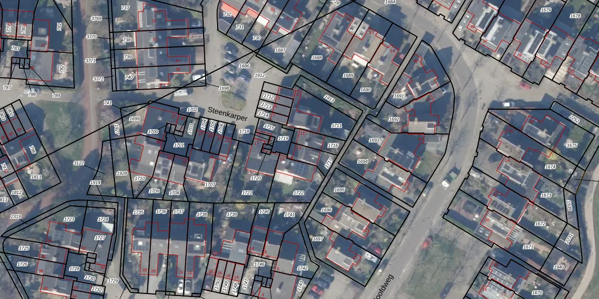 Gebruik de zoekbalk of klik op een perceel voor informatie over de adressen binnen dit perceel.
