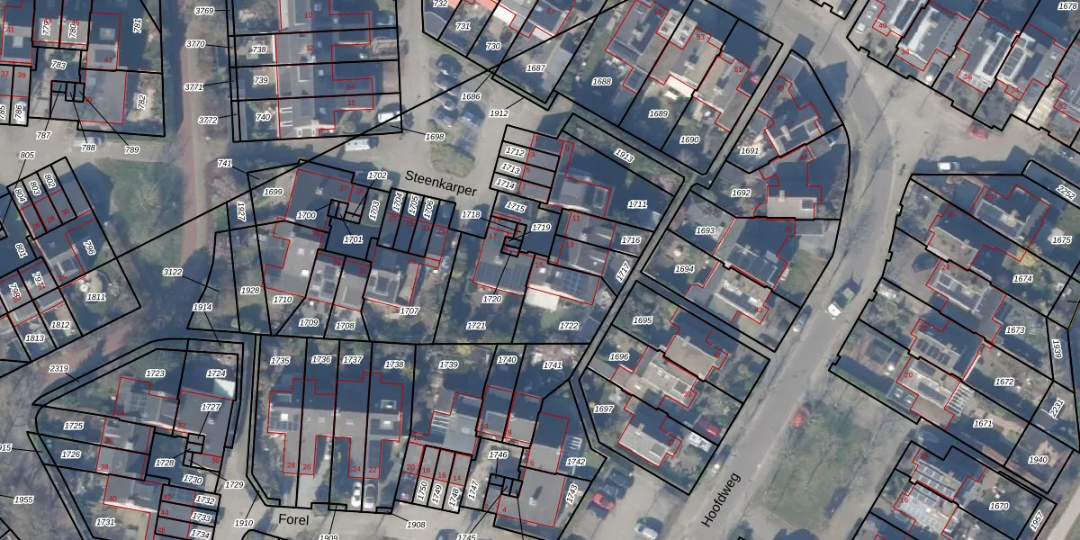 Het perceel waarop Steenkarper 15 staat heeft een oppervlakte van 222 m². Dit is een middelgroot perceel. De perceeloppervlakte wordt geregistreerd door het Kadaster. Gedetailleerde informatie over de maten van dit perceel kunt u vinden in het rapport Kadastrale kaart met maatvoering van Steenkarper 15.