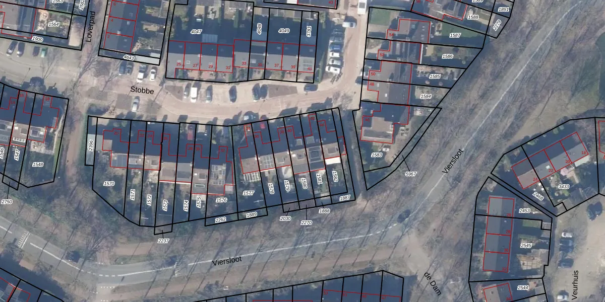 Gebruik de zoekbalk of klik op een perceel voor informatie over de adressen binnen dit perceel.