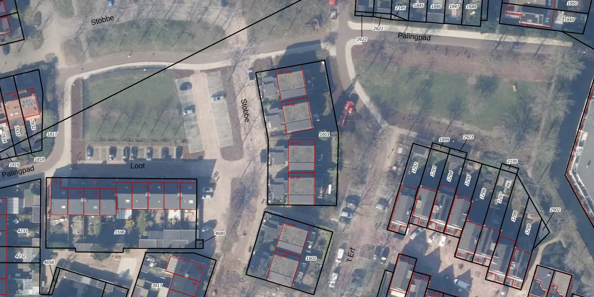Het perceel waarop Stobbe 90 staat heeft een oppervlakte van 1110 m². Dit is een zeer groot perceel. De perceeloppervlakte wordt geregistreerd door het Kadaster. Gedetailleerde informatie over de maten van dit perceel kunt u vinden in het rapport Kadastrale kaart met maatvoering van Stobbe 90.