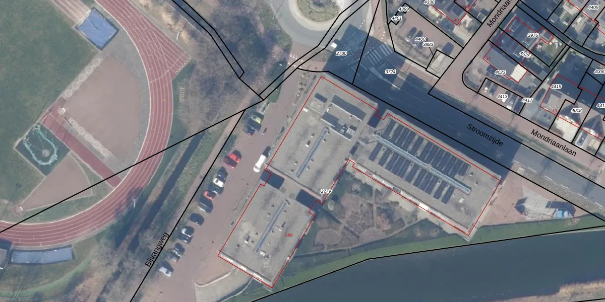 Het perceel waarop Stroomzijde 16 staat heeft een oppervlakte van 6606 m². Dit is een zeer groot perceel. De perceeloppervlakte wordt geregistreerd door het Kadaster. Gedetailleerde informatie over de maten van dit perceel kunt u vinden in het rapport Kadastrale kaart met maatvoering van Stroomzijde 16.