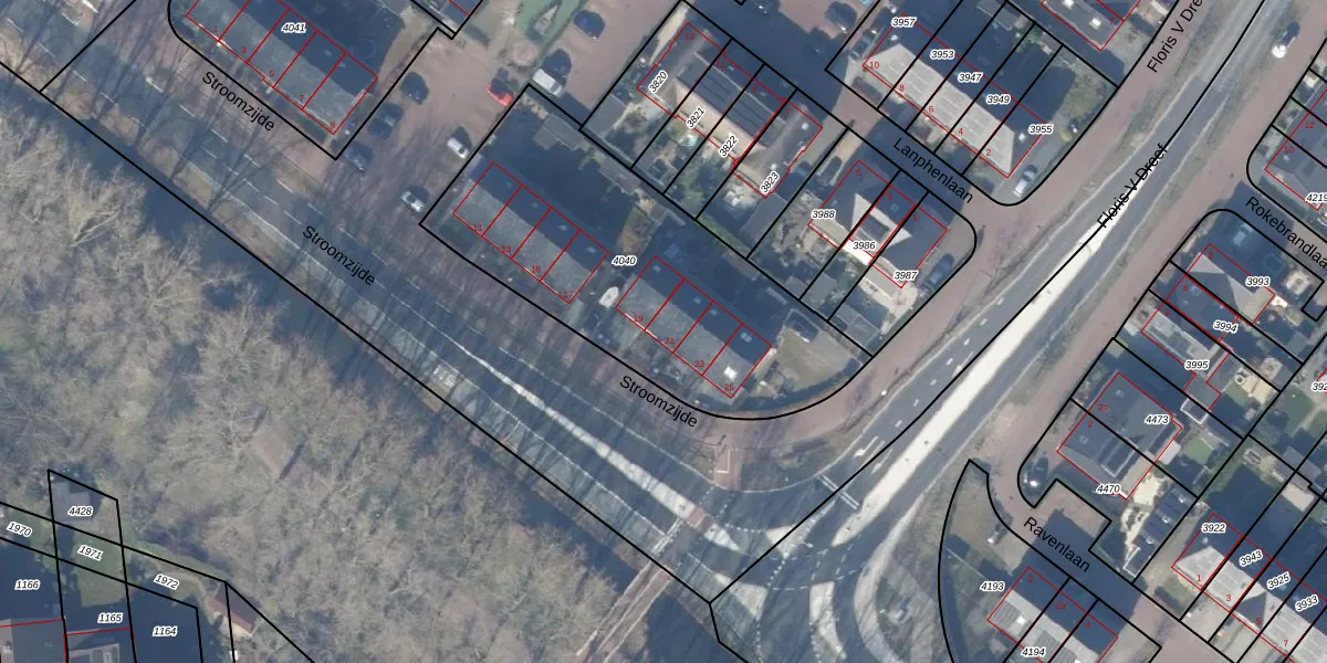 Stroomzijde 21 is gelegen op kadastraal perceel BRC00C4040. Deze kadastrale aanduiding is uniek en wordt gebruikt door het Kadaster om eigendomsrechten en andere zakelijke rechten vast te leggen. Het perceel maakt onderdeel uit van de kadastrale gemeente Blaricum.