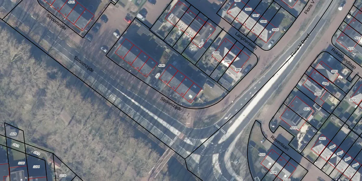 Stroomzijde 23 is gelegen op kadastraal perceel BRC00C4040. Deze kadastrale aanduiding is uniek en wordt gebruikt door het Kadaster om eigendomsrechten en andere zakelijke rechten vast te leggen. Het perceel maakt onderdeel uit van de kadastrale gemeente Blaricum.