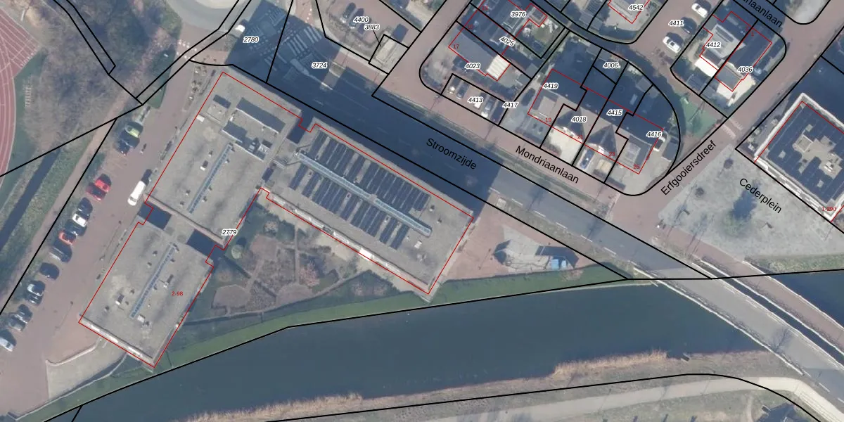 Het perceel waarop Stroomzijde 42 staat heeft een oppervlakte van 6606 m². Dit is een zeer groot perceel. De perceeloppervlakte wordt geregistreerd door het Kadaster. Gedetailleerde informatie over de maten van dit perceel kunt u vinden in het rapport Kadastrale kaart met maatvoering van Stroomzijde 42.