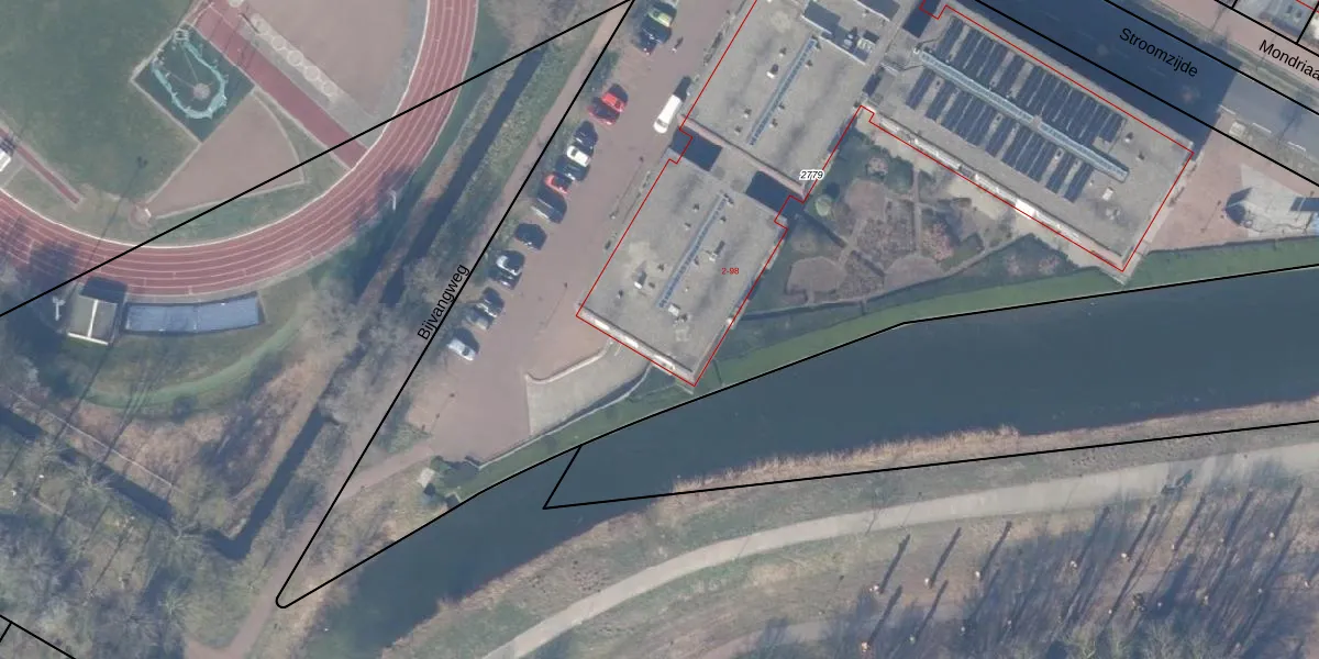 Het perceel waarop Stroomzijde 60 staat heeft een oppervlakte van 6606 m². Dit is een zeer groot perceel. De perceeloppervlakte wordt geregistreerd door het Kadaster. Gedetailleerde informatie over de maten van dit perceel kunt u vinden in het rapport Kadastrale kaart met maatvoering van Stroomzijde 60.