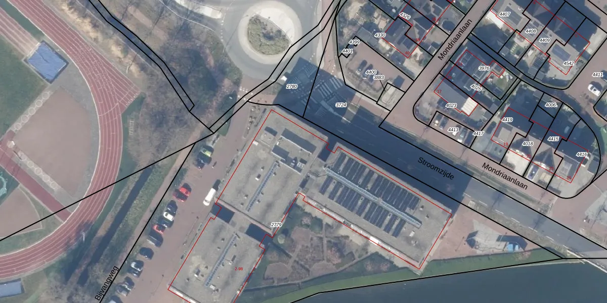 Het perceel waarop Stroomzijde 84 staat heeft een oppervlakte van 6606 m². Dit is een zeer groot perceel. De perceeloppervlakte wordt geregistreerd door het Kadaster. Gedetailleerde informatie over de maten van dit perceel kunt u vinden in het rapport Kadastrale kaart met maatvoering van Stroomzijde 84.