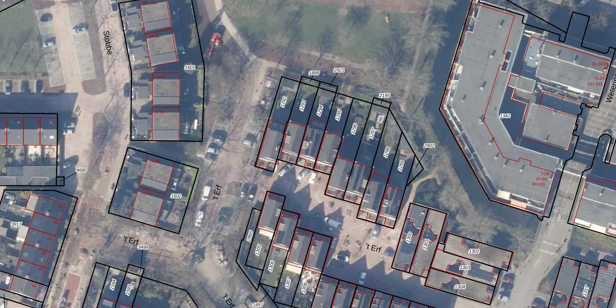 Gebruik de zoekbalk of klik op een perceel voor informatie over de adressen binnen dit perceel.