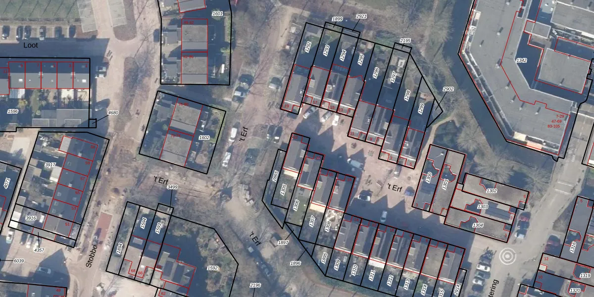 Gebruik de zoekbalk of klik op een perceel voor informatie over de adressen binnen dit perceel.