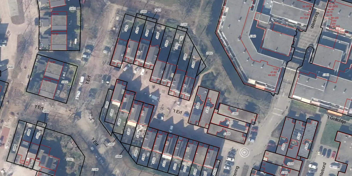 Gebruik de zoekbalk of klik op een perceel voor informatie over de adressen binnen dit perceel.