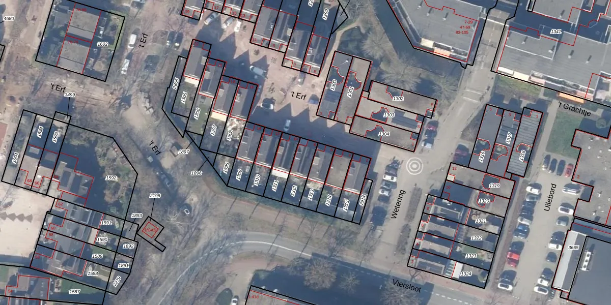 Gebruik de zoekbalk of klik op een perceel voor informatie over de adressen binnen dit perceel.