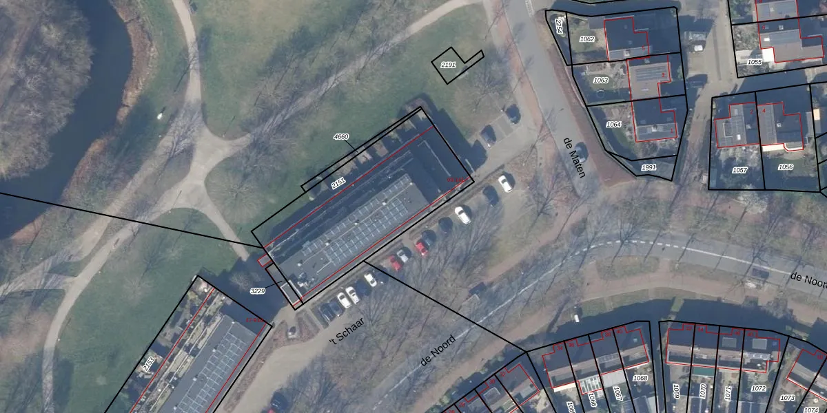 Het perceel waarop 't Schaar 105 staat heeft een oppervlakte van 1105 m². Dit is een zeer groot perceel. De perceeloppervlakte wordt geregistreerd door het Kadaster. Gedetailleerde informatie over de maten van dit perceel kunt u vinden in het rapport Kadastrale kaart met maatvoering van 't Schaar 105.