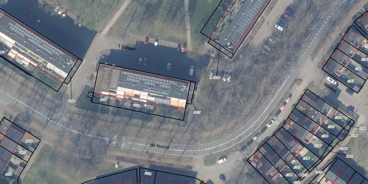 Het perceel waarop 't Schaar 18 staat heeft een oppervlakte van 1105 m². Dit is een zeer groot perceel. De perceeloppervlakte wordt geregistreerd door het Kadaster. Gedetailleerde informatie over de maten van dit perceel kunt u vinden in het rapport Kadastrale kaart met maatvoering van 't Schaar 18.