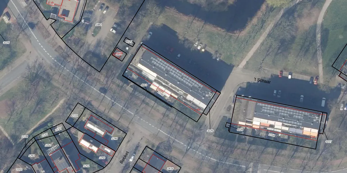 Het perceel waarop 't Schaar 41 staat heeft een oppervlakte van 1105 m². Dit is een zeer groot perceel. De perceeloppervlakte wordt geregistreerd door het Kadaster. Gedetailleerde informatie over de maten van dit perceel kunt u vinden in het rapport Kadastrale kaart met maatvoering van 't Schaar 41.