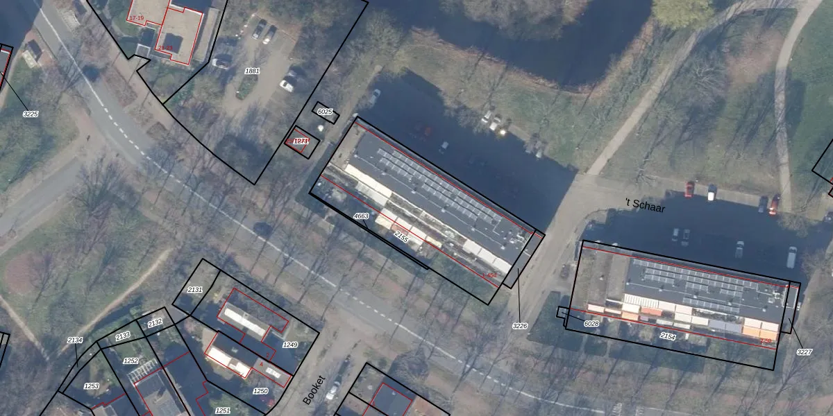 Het perceel waarop 't Schaar 43 staat heeft een oppervlakte van 1105 m². Dit is een zeer groot perceel. De perceeloppervlakte wordt geregistreerd door het Kadaster. Gedetailleerde informatie over de maten van dit perceel kunt u vinden in het rapport Kadastrale kaart met maatvoering van 't Schaar 43.
