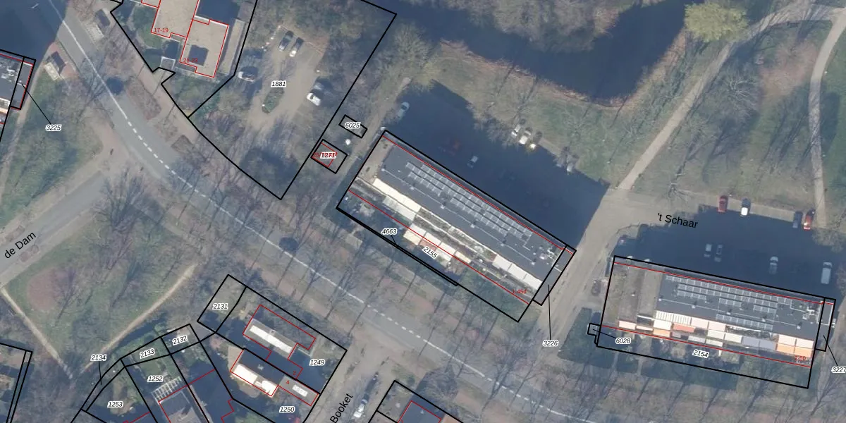 Het perceel waarop 't Schaar 45 staat heeft een oppervlakte van 1105 m². Dit is een zeer groot perceel. De perceeloppervlakte wordt geregistreerd door het Kadaster. Gedetailleerde informatie over de maten van dit perceel kunt u vinden in het rapport Kadastrale kaart met maatvoering van 't Schaar 45.