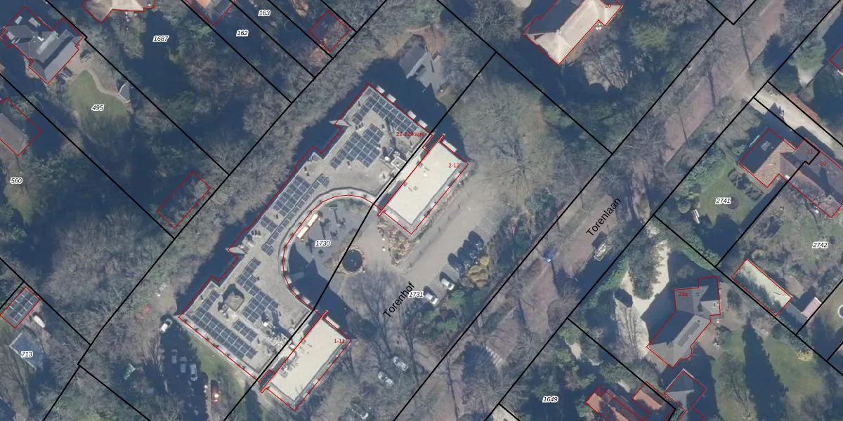 Het perceel waarop Torenhof 10 staat heeft een oppervlakte van 4220 m². Dit is een zeer groot perceel. De perceeloppervlakte wordt geregistreerd door het Kadaster. Gedetailleerde informatie over de maten van dit perceel kunt u vinden in het rapport Kadastrale kaart met maatvoering van Torenhof 10.