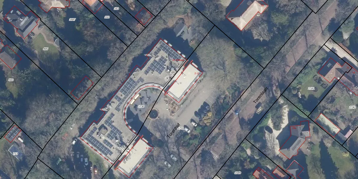 Het perceel waarop Torenhof 6 staat heeft een oppervlakte van 4220 m². Dit is een zeer groot perceel. De perceeloppervlakte wordt geregistreerd door het Kadaster. Gedetailleerde informatie over de maten van dit perceel kunt u vinden in het rapport Kadastrale kaart met maatvoering van Torenhof 6.