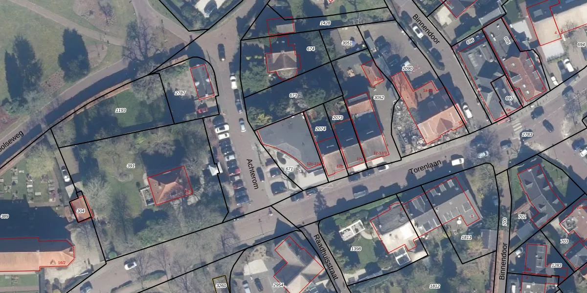Het perceel waarop Torenlaan 12-d staat heeft een oppervlakte van 363 m². Dit is een groot perceel. De perceeloppervlakte wordt geregistreerd door het Kadaster. Gedetailleerde informatie over de maten van dit perceel kunt u vinden in het rapport Kadastrale kaart met maatvoering van Torenlaan 12-d.