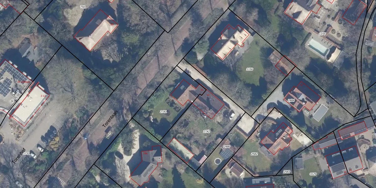 Torenlaan 21 is gelegen op kadastraal perceel BRC00E2741. Deze kadastrale aanduiding is uniek en wordt gebruikt door het Kadaster om eigendomsrechten en andere zakelijke rechten vast te leggen. Het perceel maakt onderdeel uit van de kadastrale gemeente Blaricum.