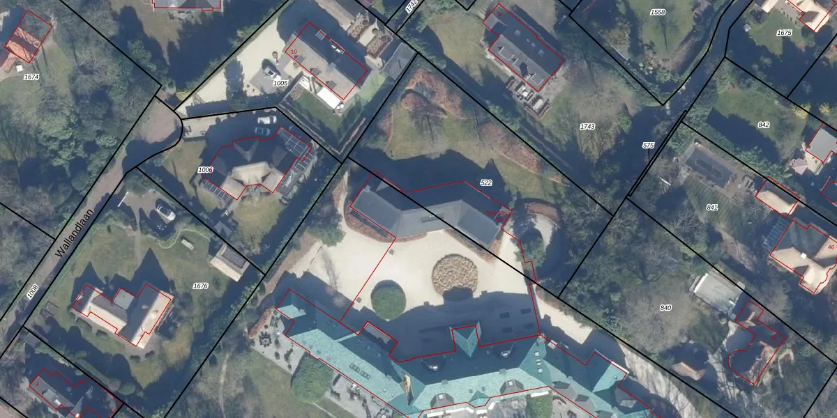 Het adres is gelegen op perceel 597 in de sectie D en de kadastrale gemeente Blaricum. De kadastrale aanduiding is aldus BRC00-D-597. De oppervlakte van het perceel is 1,0 ha. Dat is groter dan gemiddeld in Blaricum, waar de gemiddelde perceeloppervlakte op 2166,61 m² ligt. Het grootste perceel in de kadastrale gemeente is 3,41 km². Het kleinste perceel heeft een oppervlakte van 0 m². Er zijn 8 adressen aanwezig op het perceel. De huidige grenzen van het perceel zijn digitaal in de Basisregistratie Kadaster (BRK) geregistreerd op 28-08-2001.