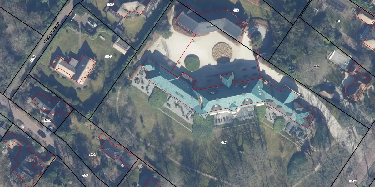 Het adres is gelegen op perceel 597 in de sectie D en de kadastrale gemeente Blaricum. De kadastrale aanduiding is aldus BRC00-D-597. De oppervlakte van het perceel is 1,0 ha. Dat is groter dan gemiddeld in Blaricum, waar de gemiddelde perceeloppervlakte op 2166,61 m² ligt. Het grootste perceel in de kadastrale gemeente is 3,41 km². Het kleinste perceel heeft een oppervlakte van 0 m². Er zijn 8 adressen aanwezig op het perceel. In de Basisregistratie Kadaster (BRK) werden de grenzen van het perceel geregistreerd op 28-08-2001.