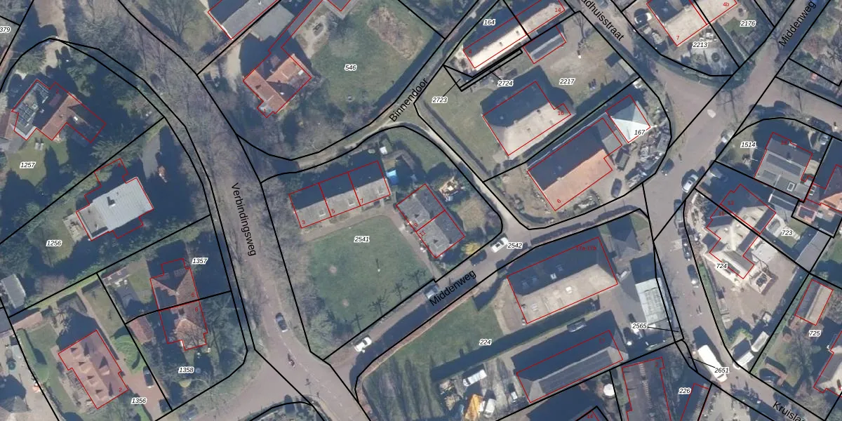 Het perceel waarop Verbindingsweg 9 staat heeft een oppervlakte van 1815 m². Dit is een zeer groot perceel. De perceeloppervlakte wordt geregistreerd door het Kadaster. Gedetailleerde informatie over de maten van dit perceel kunt u vinden in het rapport Kadastrale kaart met maatvoering van Verbindingsweg 9.