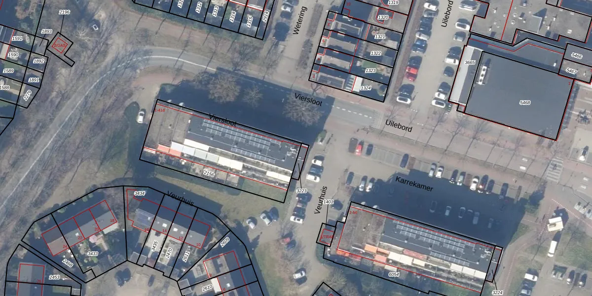 Het perceel waarop Viersloot 1 staat heeft een oppervlakte van 1085 m². Dit is een zeer groot perceel. De perceeloppervlakte wordt geregistreerd door het Kadaster. Gedetailleerde informatie over de maten van dit perceel kunt u vinden in het rapport Kadastrale kaart met maatvoering van Viersloot 1.