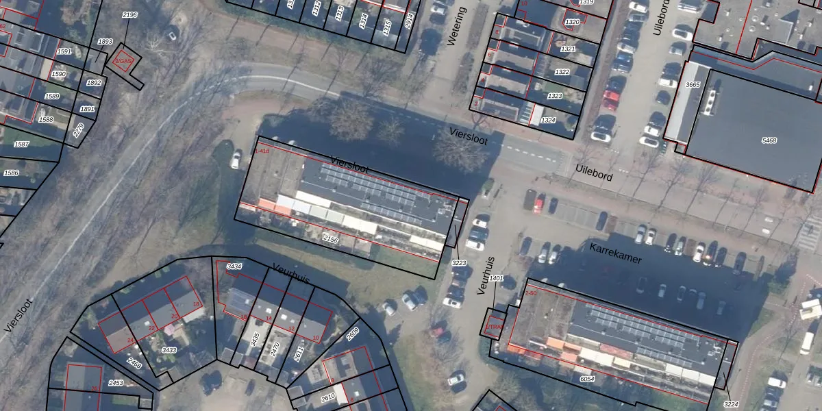 Het perceel waarop Viersloot 17 staat heeft een oppervlakte van 1085 m². Dit is een zeer groot perceel. De perceeloppervlakte wordt geregistreerd door het Kadaster. Gedetailleerde informatie over de maten van dit perceel kunt u vinden in het rapport Kadastrale kaart met maatvoering van Viersloot 17.