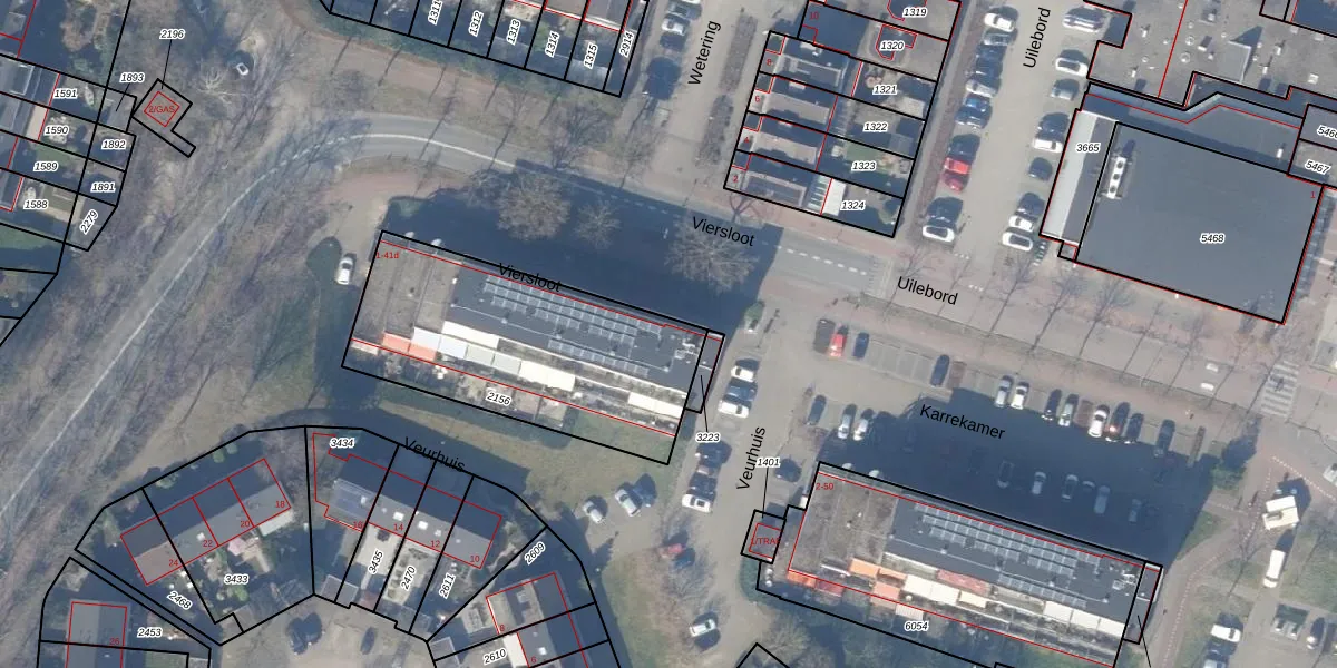 Het perceel waarop Viersloot 5 staat heeft een oppervlakte van 1085 m². Dit is een zeer groot perceel. De perceeloppervlakte wordt geregistreerd door het Kadaster. Gedetailleerde informatie over de maten van dit perceel kunt u vinden in het rapport Kadastrale kaart met maatvoering van Viersloot 5.
